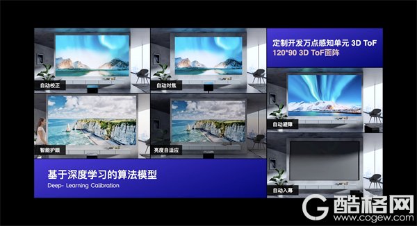 顶配芯片加持之外,当贝X5还迎来了另一重磅升级——更宽广、快速和精准的全知AI视觉系统2.0。当贝X5搭载定制开发的万点级感知单元3D ToF模组,是第一代单点ToF精度的10800倍,是第二代低分辨率面阵ToF精度的675倍。在这样的硬件配置基础上,以神经网络作为模型,全知AI视觉系统2.0将人工智能图像处理、模式识别、智能分析以及信号处理等先进的算法技术融入到了多元化的场景中,让当贝X5的画面自适应智能化程度再攀新高,能够更加流畅地实现自动校正、自动对焦、自动避障、自动入幕、智能护眼和亮度自适应等自动调节功能,并且越用越聪明。