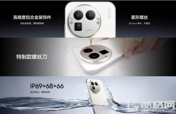 -高精度铝合金装饰件,轻盈防锈;星形螺丝与Deco纯平,握持舒适无感;IP69满级防尘防水全面防护