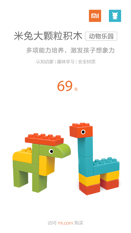 61粒装仅售69元 米兔大颗粒积木动物乐园发布