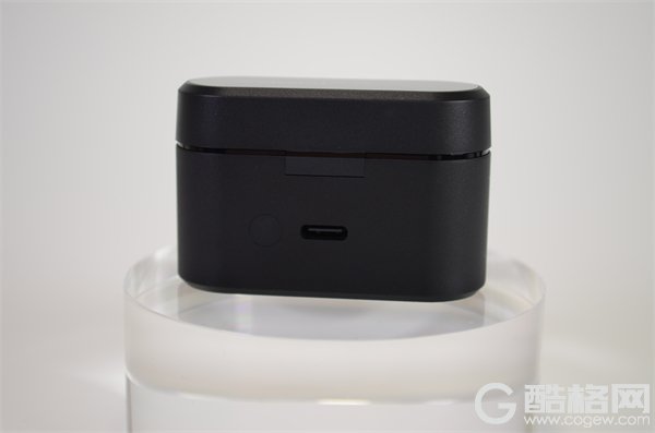 充电盒的设计十分简洁,上盖以及底部周围有一圈斜切角度,感觉还挺硬朗,电源指示灯位于正面中心位置。