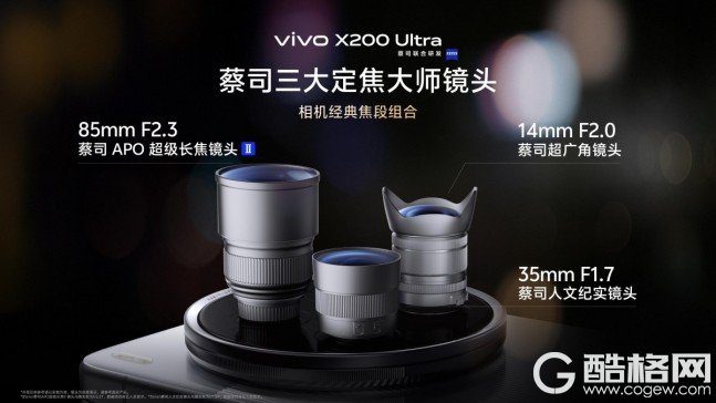 为了打造一款真正的专业创作者出行必备神器,vivo在X200 Ultra上推出了蔡司三大定焦大师镜头——14mm蔡司超广角镜头、35mm蔡司人文纪实镜头和85mm蔡司APO超级长焦镜头II。这三个焦段的定焦镜头组合,并非过去在硬件上做的参数堆砌,而是基于用户真实创作场景的深度重构,改善了过去超大底主摄导致超广角和长焦成为“战术镜头”的行业难题。通过三颗同代大底传感器,X200 Ultra避免了主摄“一枝独秀”副摄“不堪大用”的体验割裂。第一次让手机影像的三颗摄像头都能满足创作者在风光、人文、人像、视频上的专业创作需求,实现了一个设备中多重用途,不仅提升了创作的灵活性,还减少了携带多种镜头的负担。
