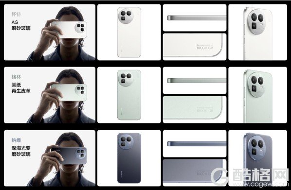除真我GT8 Pro同款类纸再生皮革「格林」、AG磨砂玻璃「怀特」配色外,还带来采用最新AG玻璃工艺的「纳维」,随光线变换产生深蓝色和浅灰色的自然交替