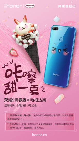 荣耀9青春版邂逅哈根达斯,520你和谁最“合拍”?