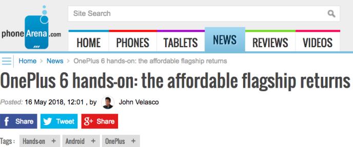 受到全球用户热捧的一加6专业成绩如何?海外知名的重量级媒体们的评测现已新鲜出炉:权威科技媒体《The Verge》称一加6的工业设计、质感、屏幕显示等方面都是顶级Android旗舰机的水平;知名科技媒体《AndroidAuthority》表示一加6可能是迄今为止Android手机中最好的配置;此外,知名科技媒体《PhoneArena》也给出了他们对一加6的评价——超值旗舰归来。