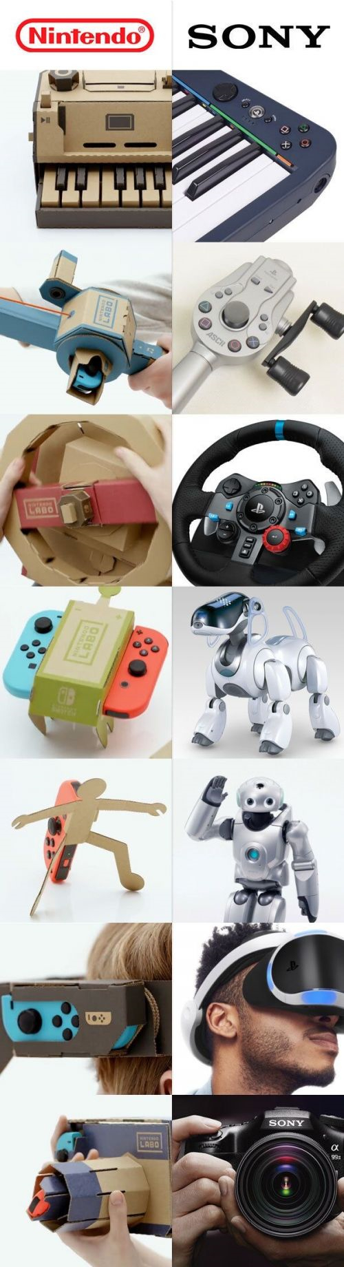 这一次任天堂的动作真可谓是超乎了人类的想象,整个世界都在日趋电子化,VR、AR、人工智能等新科技在不断挑战人类认知的时候,任天堂作为游戏行业的巨头却反其道而行之,推出纸盒游戏——Nintendo Labo?如果拿这些年来其他大厂的动作作对比,这就让人不得不佩服任天堂在做游戏前曾是老牌玩具厂商的底气。