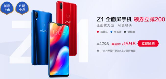 近日,vivo推出了性价比极高的全新Z系列新机,在开启预定后很快就突破了10000台的预定量,赢得了众多年轻消费者青睐,它就是vivo Z1。从售价、配置以及vivo产品线布局等多方面可以看出,vivo Z1主打线上市场,具备超高的性价比。在今天凌晨0点,vivo Z1在线上正式开卖,目前可在vivo官方商城(shop.vivo.com)、vivo天猫官方旗舰店(vivo.tmall.com)、vivo京东官方旗舰店(vivo.jd.com)、vivo苏宁官方旗舰店(shop.suning.com/30000019)等线上渠道购买。领取200元vivo Z1购机优惠券后,到手价仅1598元,下面一起来看看这款机子的亮点。