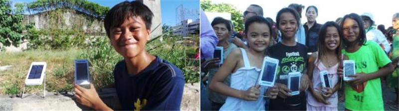 通过“ShareTheLight”活动拿到太阳能灯的孩子们