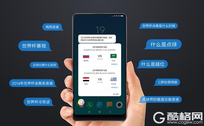 很多男球迷或许会有这样的经历,世界杯比赛期间会强行拉上自己的女朋友一起看球,为自己喜欢的球队助威。然而足球对于很多女性用户还是比较陌生,她们经常会冒出一些“不可理喻”的业余问题,比如“越位是什么意思”、“这个帅哥是谁”等等。如今有了小爱同学的加持,男球迷们再也不用为此“耗费心力”,一切都可以交给小爱同学来帮你解答。