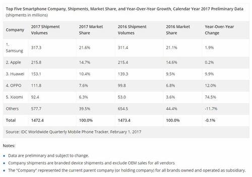 在刚刚过去的2017年,OPPO则稳步提升,IDC数据显示,2017年OPPO全球销量达到1.118亿台,稳居国内第二和全球第四。更为重要的是,依托于中国本土市场,OPPO的影响力正逐步向全球扩展。