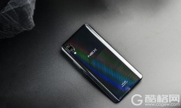 在vivo NEX的背部,采用了全新的3D玻璃盖板,官方宣称为“全息幻彩技术”,灵感来自自然界的贝母,随着光照角度的不同,会出现彩虹色的纹理,算得上一个小彩蛋。玻璃盖板与中框的拼接工艺非常精致,尤其在息屏的时候,整机的一体感非常强烈。