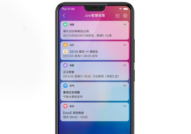 紧随潮流的步伐,vivo Z1i在人工智能方面走在了时代前沿,加入了vivo全新的人工智能助理——Jovi。Jovi AI助理已经全面应用到游戏模式、智慧场景、智慧识屏、驾驶模式等众多部分,譬如在智慧场景中,Jovi可将手机上重要的信息内容进行聚合,并在适当的时候向用户发出提醒,主动为你提供上班路况、航班动态、快递信息、目的地天气等贴心服务,让AI人工智能服务于生活的方方面面,成就简单、高效、智能的新体验。