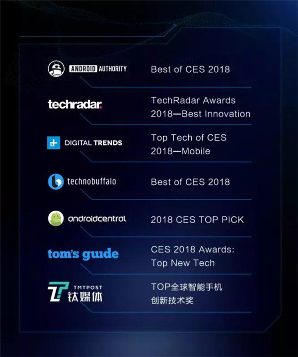 正因为一系列出色的表现,在CES大会结束后,vivo X20Plus就获得了包括CES2018最佳科技奖、CES2018最佳智能手机科技奖、CES 2018最佳创新将、TOP全球智能手机创新技术奖等等一系列重量级奖项。这也证明了vivo X20Plus屏幕指纹版的推出所具备的重大意义,以及其创新性给予科技行业的震撼。