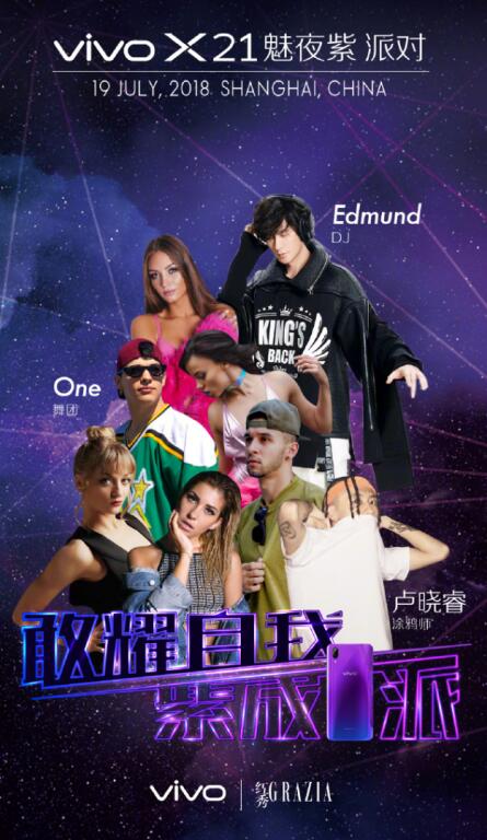 今晚,“敢耀自我,紫成一派”vivo X21魅夜紫主题派对将在上海外滩3号开启,vivo X21魅夜紫版也将于7月20日凌晨在线上线下全面开售,心动的网友及粉丝们赶快行动吧,相信你一定能感受到不一样的音乐与时尚潮流。