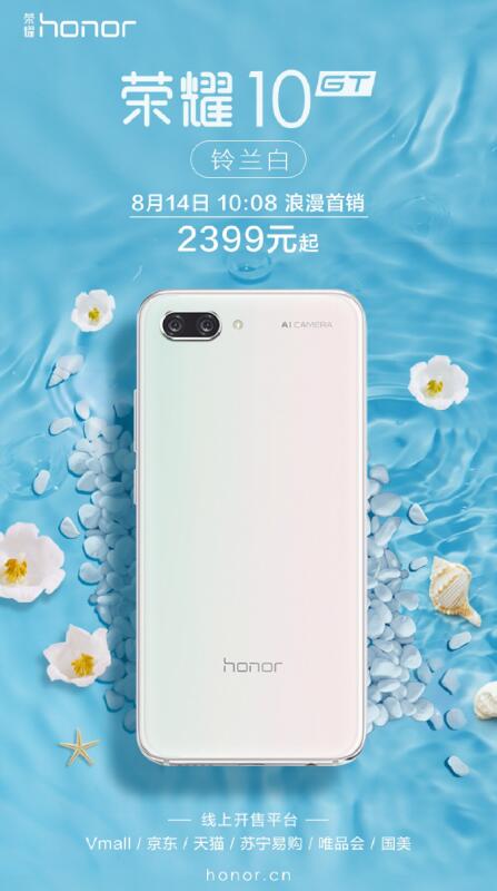荣耀10GT 铃兰白8月14日浪漫首销 售价2399元起