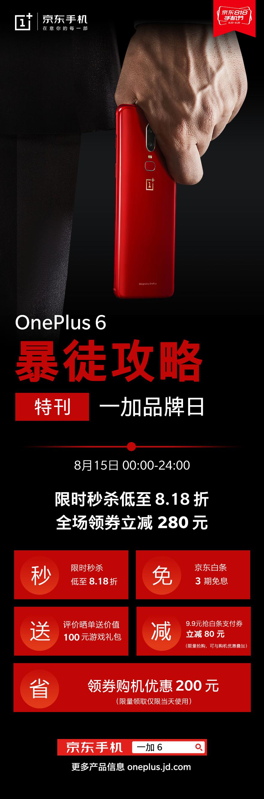 京东818手机节火热进行中,一加品牌日也将于8月15日正式开启,15日零点开始,用户登录京东官网即可享受京东白条三期免息、领券立减200元、购裸机增配件、评价晒单有礼、8.18折手机限量抢、9.9元抢白条立减券等多重特惠,全场领券最高立减280元。
