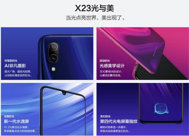 在硬件配置上,超大广角、超逆光以及第四代光电屏幕指纹,则是X23这代在产品功能方面的亮点。