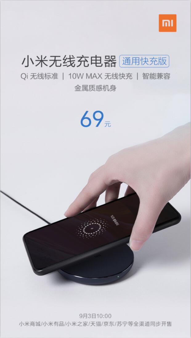 这款小米无线充电器(通用快充版)将于9月3日于小米商城、小米有品、天猫、京东、苏宁易购等渠道开售,小米之家当日同步开售,售价仅69元。