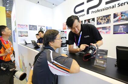 在历届国际大型体育赛事中,新闻报道人员都肩负着重要的职责与使命,因此他们在赛场边的体育新闻影像记录也成为至关重要的环节之一。在众多参与赛事报道的体育摄影记者中,佳能EOS设备用户占据较高比例,因此为保障使用佳能EOS设备的体育摄影记者的工作,佳能在各类大型赛事中都设立了CPS (Canon Professional Services) 中心,为新闻记者提供专业、高效的支持服务。CPS(佳能专业服务)是佳能公司针对全球专业摄影师订制的强化型售后服务计划,以会员制的形式展开服务。在本届亚运会上,作为赛会官方合作伙伴的佳能,也在新闻中心设立了CPS中心,并配备了一支由20人组成的技术专家队伍,提供包括汉语、英语、日语、韩语、印尼语、马来语、泰语、粤语、越南语、塔加拉语10种语言,从早8点到晚8点,一天不间断12小时提供专业的服务。佳能CPS中心经过40余年大型赛事服务的磨练,已经形成了一套成熟的服务系统,能快速、高质地应对多种服务需求。