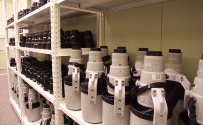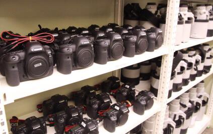 佳能CPS中心整齐摆放的EOS相机及EF镜头