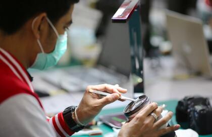 除了提供数量充足的EOS器材借用服务,佳能CPS还可以第一时间对EOS设备进行专业维修、清洁、保养及固件升级,保障体育摄影记者设备的正常使用。为此,佳能CPS中心的技术工程师在赛事前便进行了大量准备工作,并配备了多名经验丰富的人员进行现场支持,以确保在现场能自如应对突发需求。据统计,本次亚运会佳能CPS中心平均每天接待70余位摄影师帮助他们办理器材出借、为约30位摄影师提供相机及镜头的清洁服务,高效且贴心的服务更是广受各国摄影师好评。