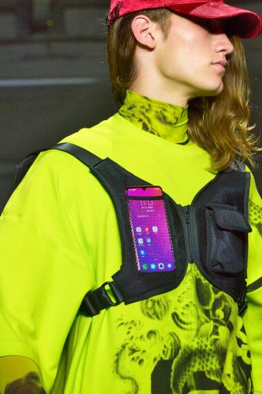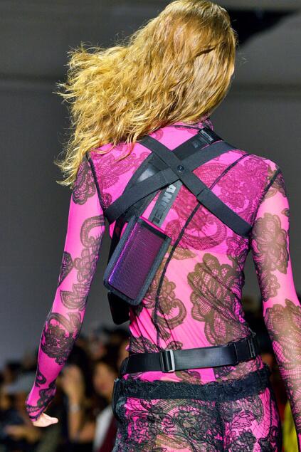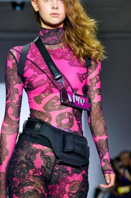 Waist Bag已渐渐成为现今人们不可忽视的潮流、时尚元素之一,以vivo X23魅影紫的色彩为元素特别设计款腰包,作为时尚穿搭的配饰呈现在T台上。