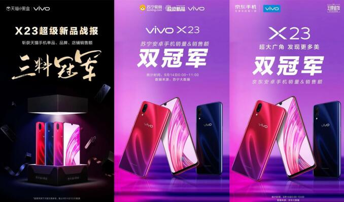 据vivo中国区销售副总裁刘宏透露,9月14日开售的vivo X23无论是线上的京东、天猫,还是线下的各大零售商平台,都获得了3000-4000元价位段手机首销销量冠军,首销再次创造新纪录。