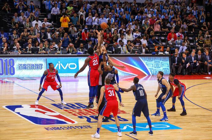 10月8日,2018 NBA中国赛在深圳大运中心热力开赛,来自东部的新贵球队76人与西部老牌劲旅独行侠两队继续群雄逐鹿,以激烈的比分争夺为球迷献上酣畅淋漓的篮球盛宴。