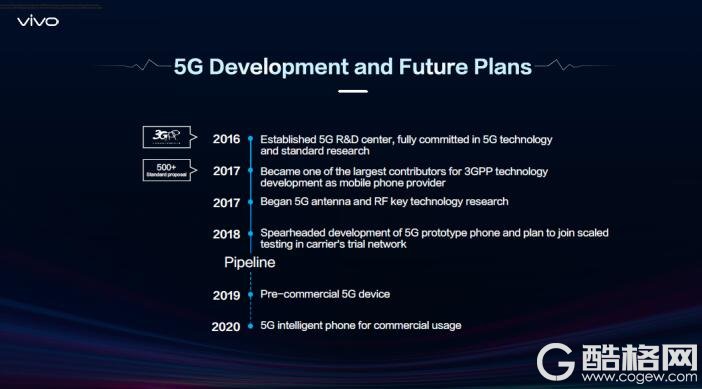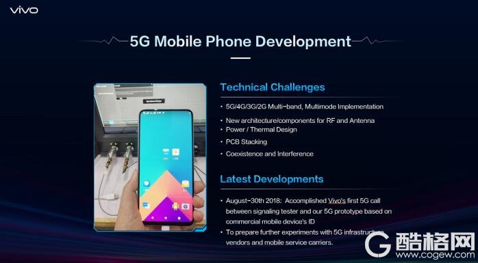 2018年,vivo正式启动5G终端试验样机的研发,并于今年8月成功实现vivo 5G First call成功调通,初步完成了面向商用的5G智能手机软硬件开发。在此基础上,vivo计划于12月实现基于移动终端的5G通讯应用展示。