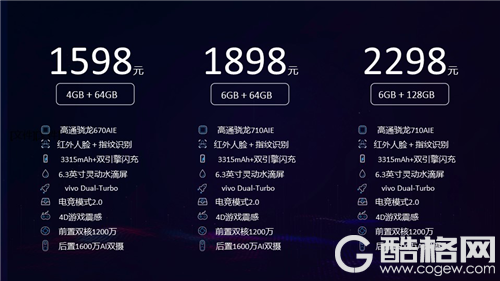 目前,高颜值的性能实力派新机vivo Z3已正式开售,4GB+64GB售价1598元(搭载高通骁龙670AIE)、6GB+64GB售价1898元(搭载高通骁龙710AIE)、6GB+128GB售价2298元(搭载高通骁龙710AIE)。率先购机成功的用户将有机会参与“买Z3,抢空投”活动,获得“吃鸡装备礼盒”,还可享三期免息、领券最高省300元等优惠,好礼不断只等你来,快登陆vivo官网和各大电商平台vivo官方旗舰店发现更多惊喜,或参与微博互动喜提心愿清单大礼包。