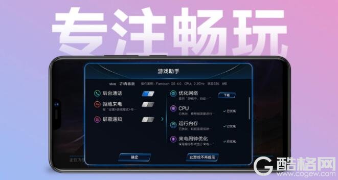 同时,vivo Z1青春版拥有4GB的超大运行内存,能够实现更流畅的多任务操作。该机还拥有专业游戏模式,可以屏蔽第三方应用通知,重要来电通过横幅显示,有效避免外界干扰,让游戏体验更加具有沉浸感。