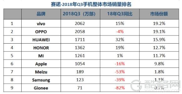 不仅是在双十一期间,vivo在整个2018年手机市场中的表现也是十分抢眼。据赛诺最近发布的数据显示,2018年1-9月vivo销量达到5609万部,位居市场第二;在2018年Q3手机整体市场销量排名中,vivo以2062万部位居榜首,同比增长15%,占据了19.2%的市场份额。