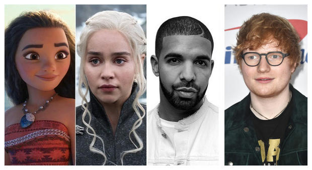 在苹果公布的2017年全美最受欢迎电影、电视剧、音乐专辑与歌曲榜单上,《海洋奇缘》、《权力的游戏》、Drake的新专《More Life》与黄老板的《Shape of You》分别获得各项分类的第一名。