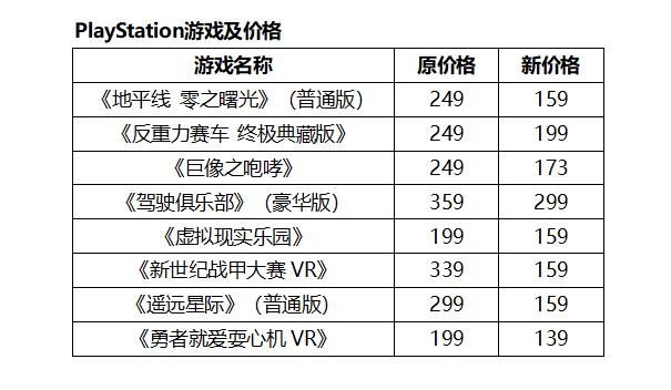 2月21日,索尼互动娱乐(上海)有限公司今日宣布了《地平线零之曙光》、《巨像之咆哮》、《虚拟现实乐园》、《勇者就爱耍心机VR》等8款PlayStation游戏在中国大陆地区的新价格,2019年2月22日起新价格正式生效。