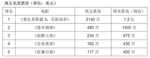 没有对手!“复联3”称霸北美周五票房本周过后北美有望破4.5亿美元 全球破10亿
