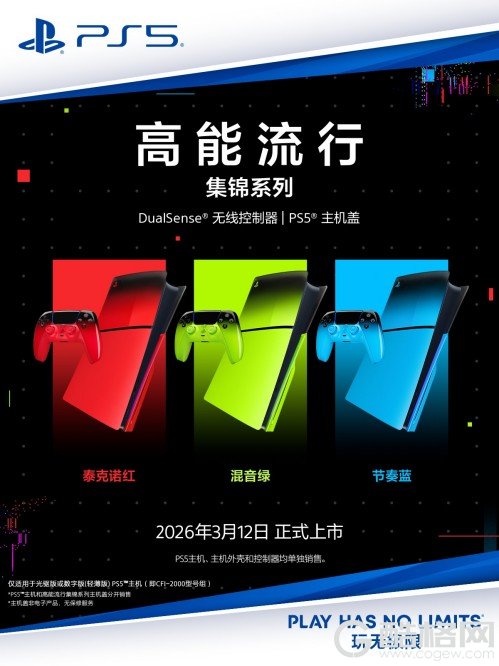 2026年2月27日—索尼互动娱乐(上海)有限公司(以下简称“索尼互动娱乐”)今日正式宣布,PlayStation多款全新配件将于2026年3月陆续在中国大陆上市,更好的满足玩家多样化游玩需求。配件产品包含:DualSense®无线控制器-《失落星船:马拉松》限定版,3月6日正式上市,建议零售价人民币639元,即日开启预售;高能流行集锦系列DualSense®无线控制器及PS5™(轻薄版)主机盖将于3月12日上市,建议零售价分别为人民币639元及人民币559元;DualSense®无线控制器 -《死亡搁浅2:冥滩之上》限定版,将于3月12日开启预售,3月19日正式上市,建议零售价人民币639元。