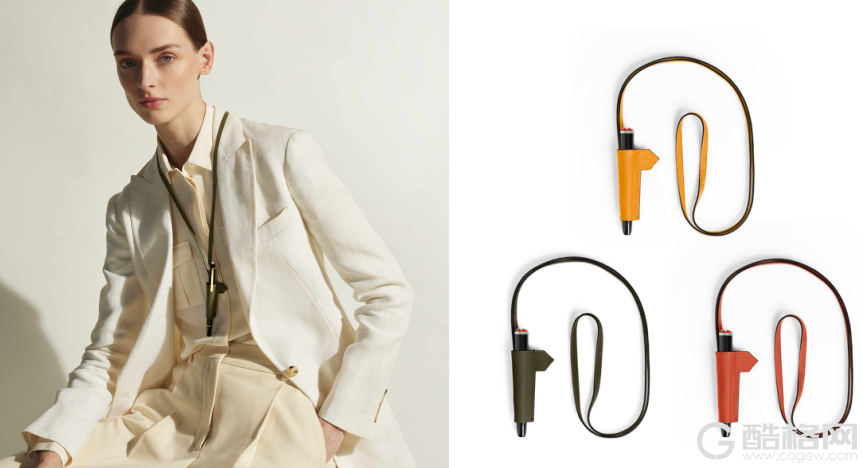 笔挂项链采用金橘红、卡其绿与暖姜黄色调的匠心皮质,可佩戴于颈间,亦可固定于皮带或包袋之上,让书写工具始终触手可及,时刻记录灵感瞬间。