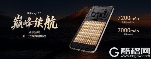 荣耀Magic8全系搭载新一代青海湖电池,容量突破7000mAh。荣耀Magic8 Pro支持120W有线与80W无线双快充,兼容100W PPS充电协议。在荣耀都江堰AI电源管理系统和骁龙芯片底层调教下,将典型场景功耗优化了13%,带来巅峰续航体验。