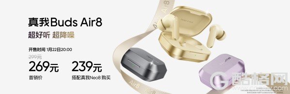 真我Buds Air8,即日起正式开售,首销价269元;搭配真我Neo8购买,仅需239元。