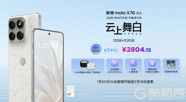 联想moto X70 Air云上舞白冰钻限定版价格为3499元,国补到手价仅约2804元。即日起下单用户除可享受首销四重礼遇外,还将获赠张凌赫同款专属手机壳,打造从内到外的完整高定体验。