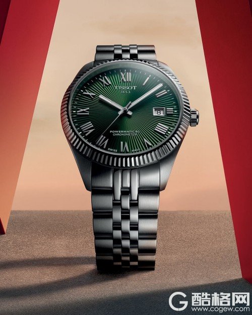 新款天梭宝环系列天文台认证款男士腕表,以39毫米表径搭配深绿色日光纹表盘,诠释沉稳从容的出行态度