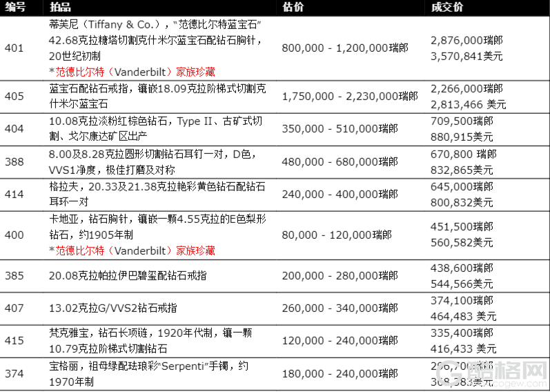 富艺斯《珍贵珠宝:日内瓦V》以逾1