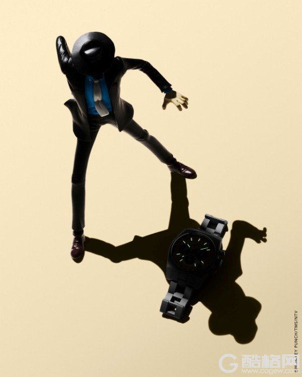 全新CHRONOMASTER旗舰系列复刻版腕表次元大介特别版将这份致敬更推进一步。表壳采用37毫米哑光黑色微喷砂钛金属精心打造,通过均匀的哑光质感,凸显出这种轻质却耐用的金属的深灰色调。其米色表盘饰以对比鲜明的黑色计时盘及测速刻度。指针与镶贴时标均涂覆米色Super-LumiNova®超级夜光物料,为腕表赋予温暖复古的韵味。