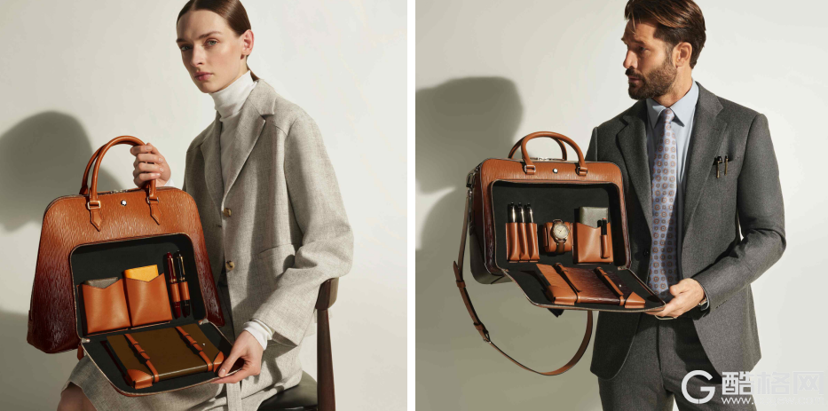 万宝龙书写旅行家手提包枫叶棕(左)万宝龙书写旅行家公文包枫叶棕(右)