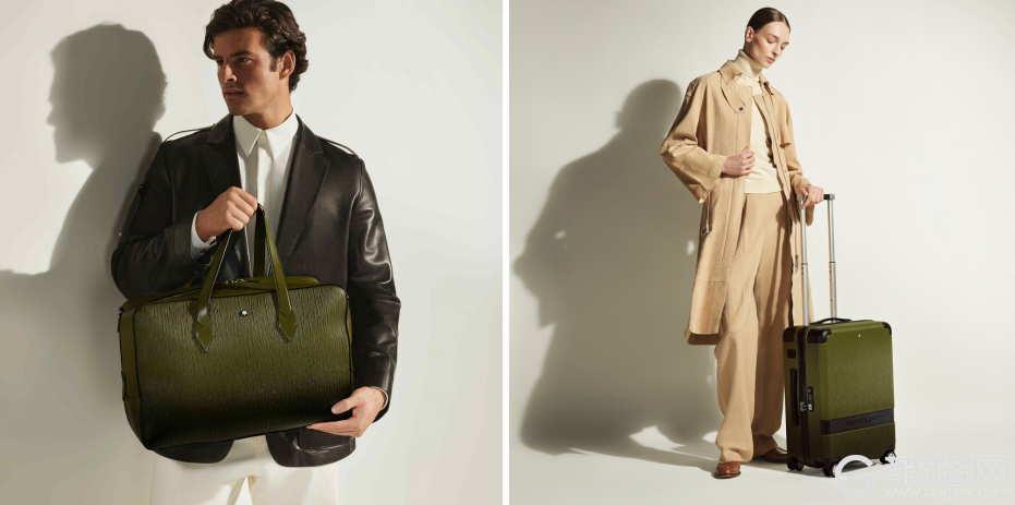 万宝龙树纹旅行袋橄榄绿(左)万宝龙树纹旅行箱橄榄绿(右)